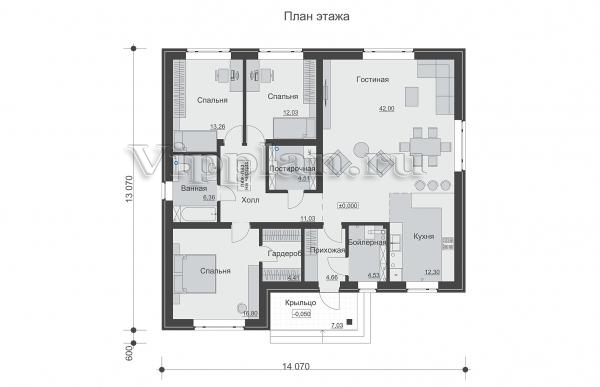 | Размеры дома: | 13.07м×14.07м |